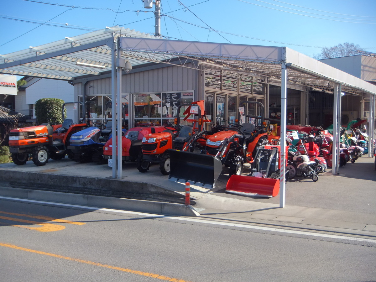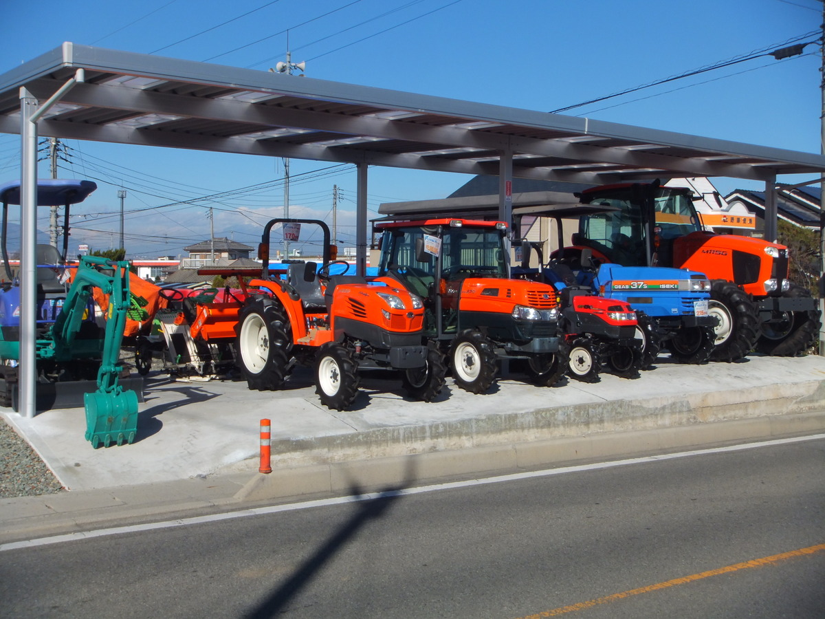 当店は甲府のやや南に位置し、中央自動車道の甲府南ICより約10分。中部横断自動車道の増穂ICより約10分の所にあり、近くには『みたまの湯』という甲府盆地が一望できる温泉もあります。お客様はプロの方から土日農業、家庭菜園愛好家の方まで幅広いのが特長です。使用時間・使用頻度が少ない程度の良い中古機械がたくさん展示されています。各種メーカーの小型トラクタ・チェンソー・刈払機等を常時展示在庫し、カタログや口頭説明だけではなく、実際に見て触って比べて頂く様、心がけております。『毎日が展示会』をモットーに各種農機具を新品・中古ともに増やしてまいります。よろしくお願いいたします。山梨県農業機械商業協同組合会員、農業機械公正取引協議会会員No.第19053号、古物商許可証471062200192号、農業機械1級整備技能士94-1-077-19-1)